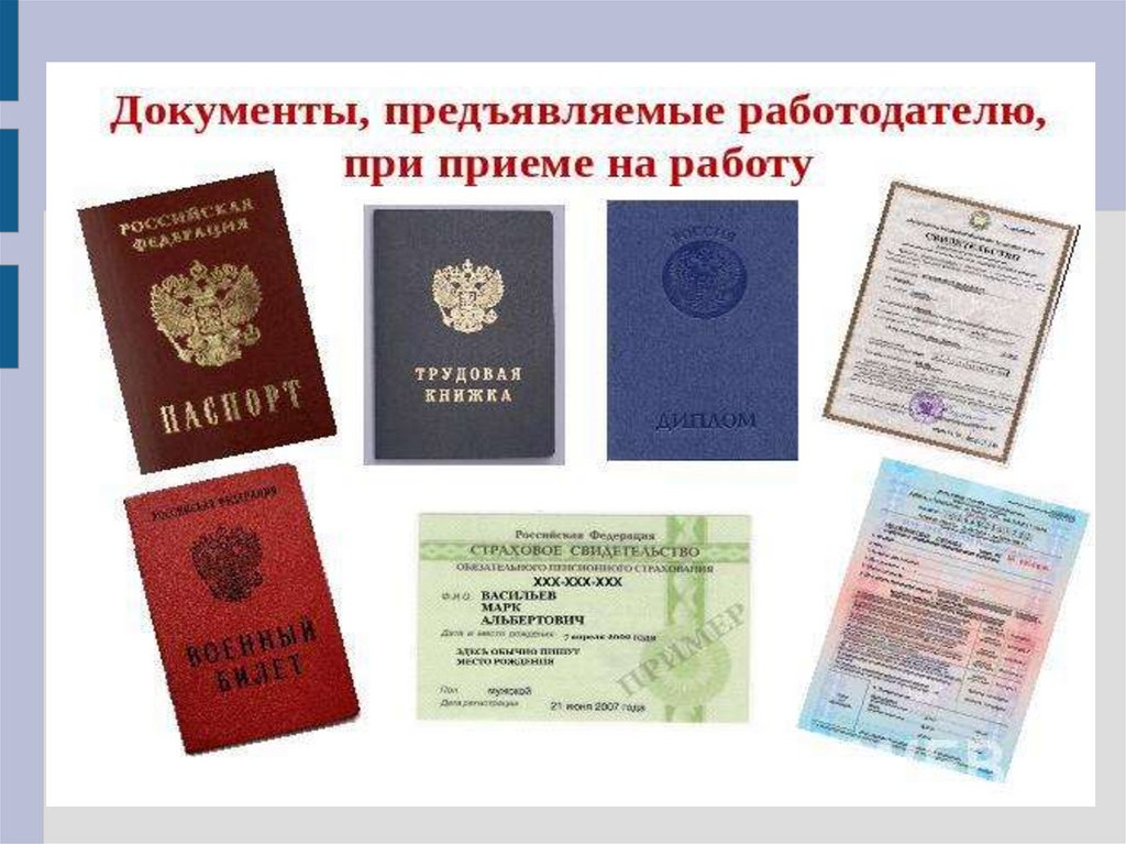 представить при приеме на работу, информация о допуске к работе, об испытательном сроке,