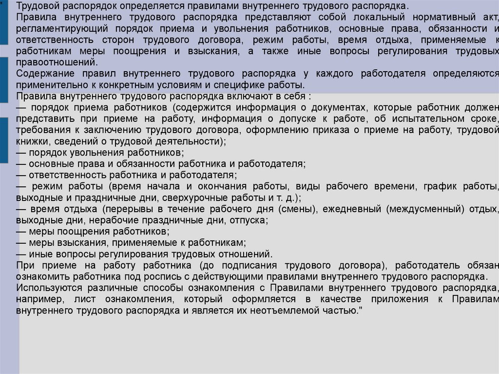 "Трудовой распорядок определяется правилами внутреннего трудового распорядка.