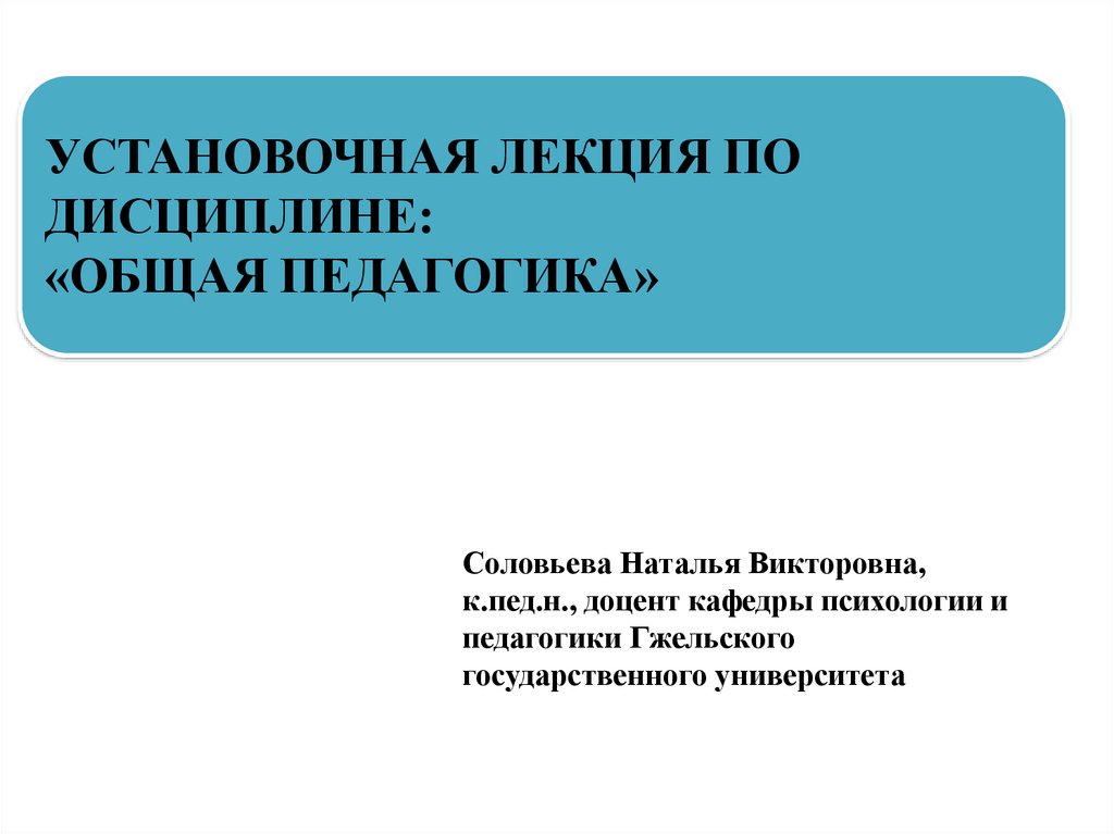 УСТАНОВОЧНАЯ ЛЕКЦИЯ ПОДИСЦИПЛИНЕ: