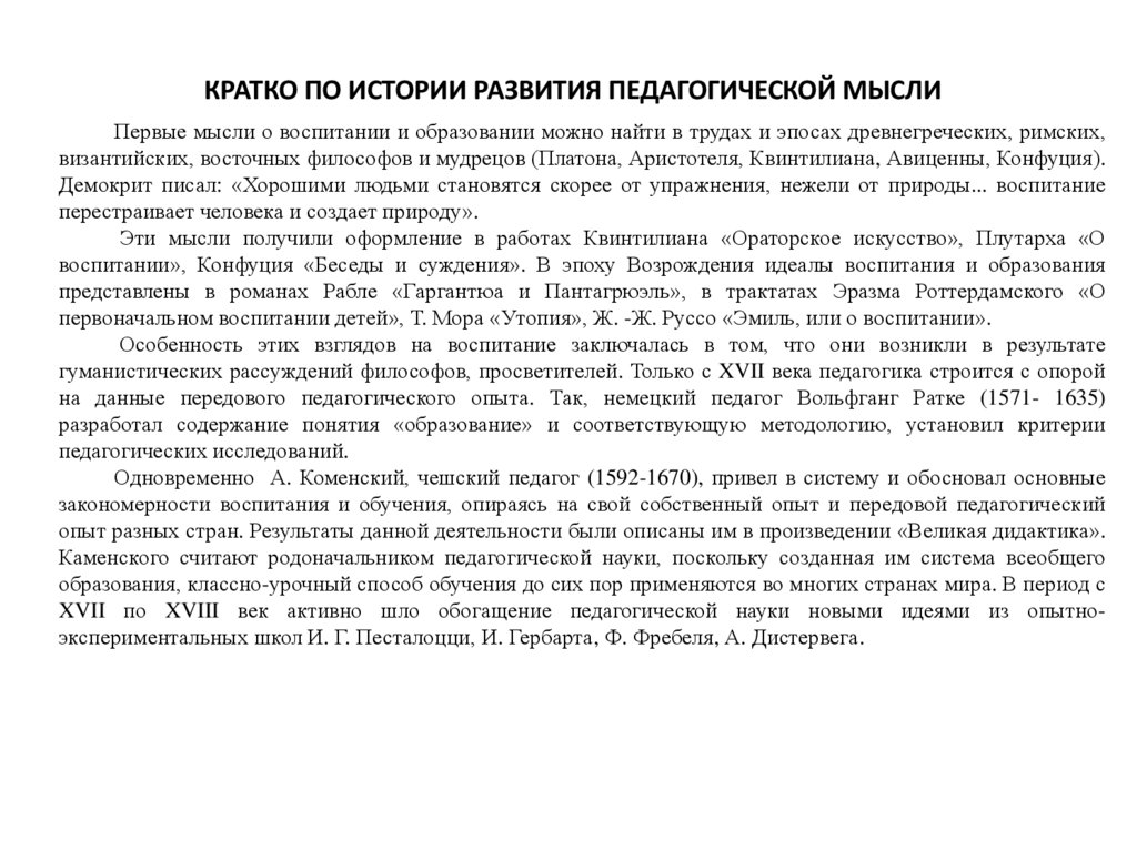 на тему: «Развитие педагогической мысли в .......»