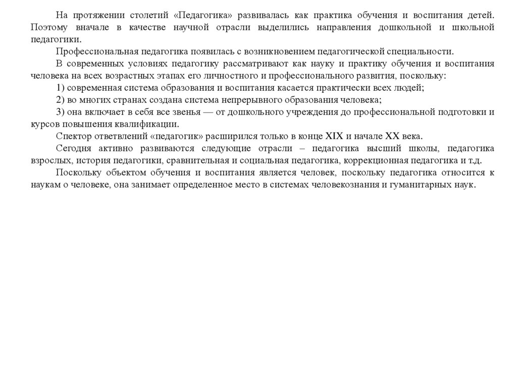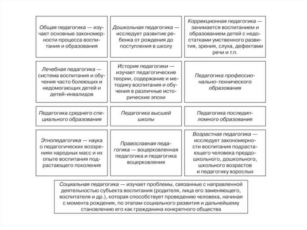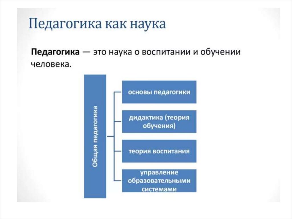 Педагогика как область научных дисциплин о воспитании и обучении, образовании человека
