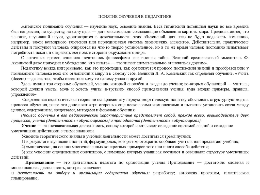 обучения, социализации и творческого саморазвития человека. Теория педагогического процесса, его