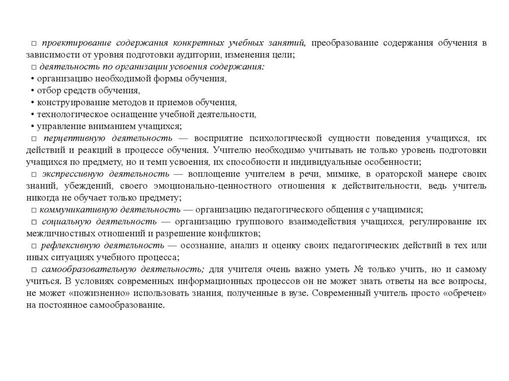 □ коммуникативную деятельность — организацию педагогического общения с учащимися;