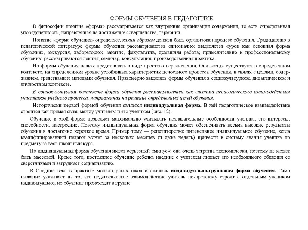 Но формы обучения нельзя представлять в виде простого перечисления. Они всегда существуют в определенном