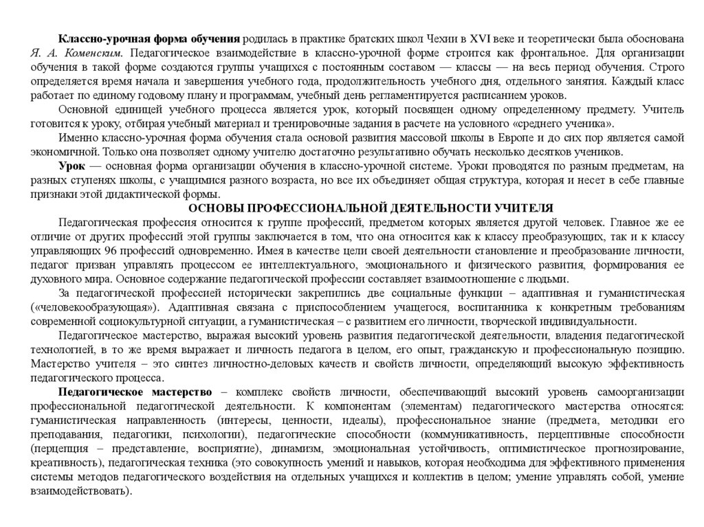 Именно классно-урочная форма обучения стала основой развития массовой школы в Европе и до сих пор является самой