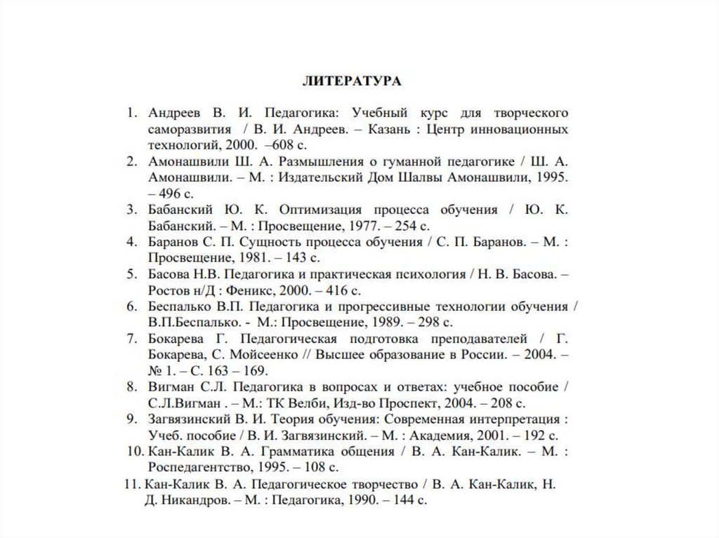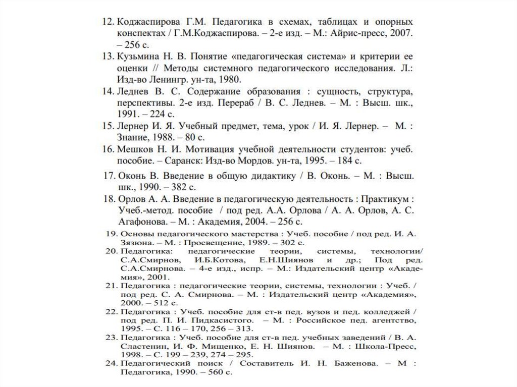 3. Сластёнин А.В. Педагогика. Учебное пособие. С.: Вузовское образование, 2014