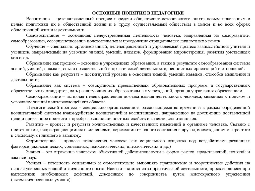 умениями и навыками, развития мировоззрения...». Долгое время в истории педагогики «воспитание»