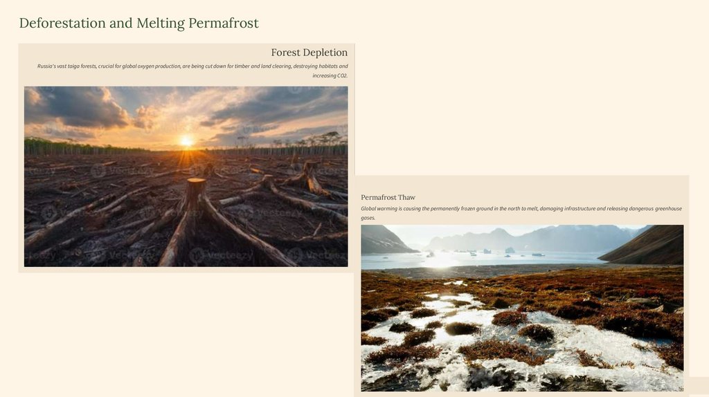 Russia's vast taiga forests, crucial for global oxygen production, are being cut down for timber and land clearing, destroying habitats and