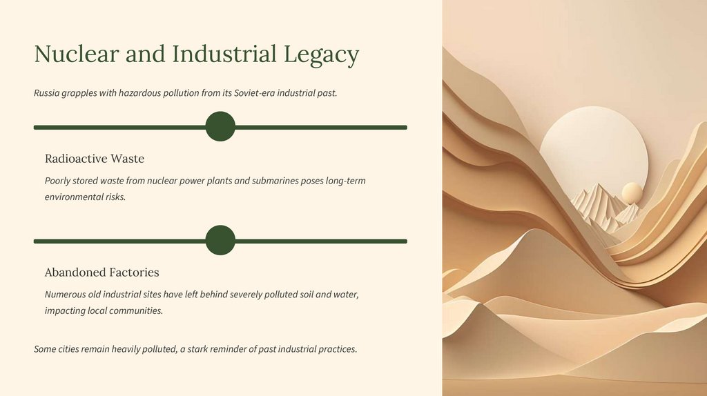 Nuclear and Industrial LegacyRussia grapples with hazardous pollution from its Soviet-era industrial past.