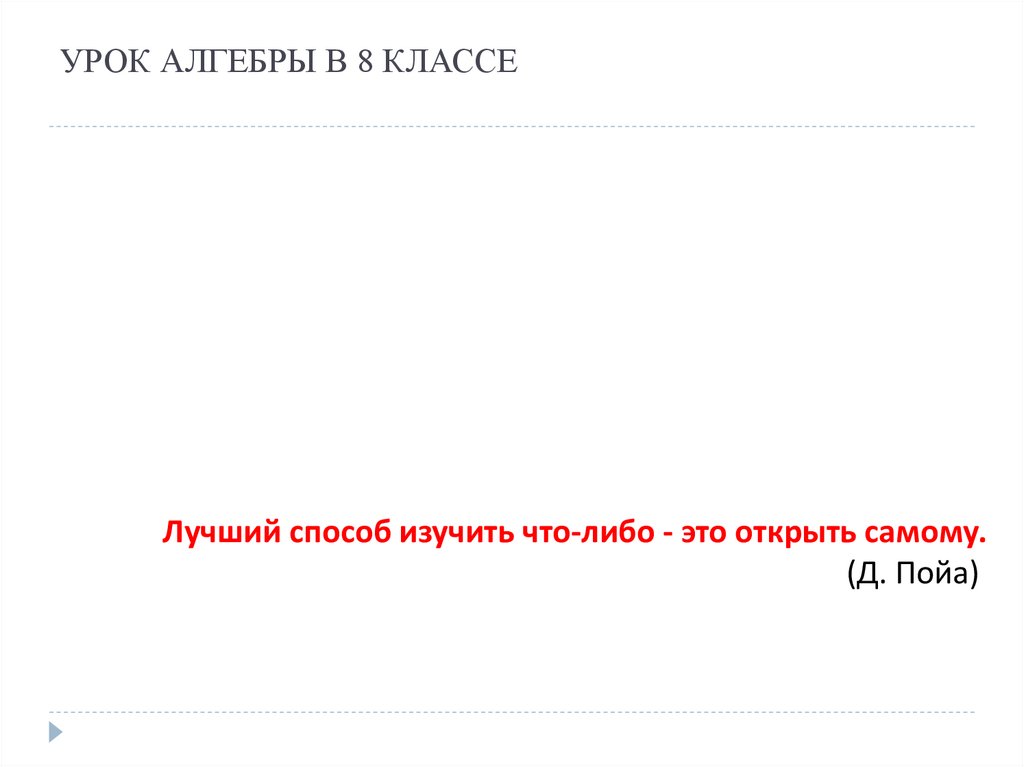 1. УРОК АЛГЕБРЫ В 8 КЛАССЕ