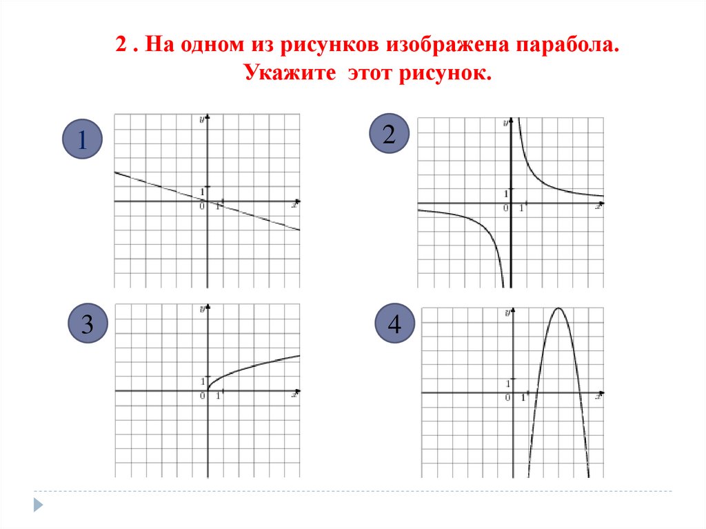 2 . На одном из рисунков изображена парабола.Укажите этот рисунок.