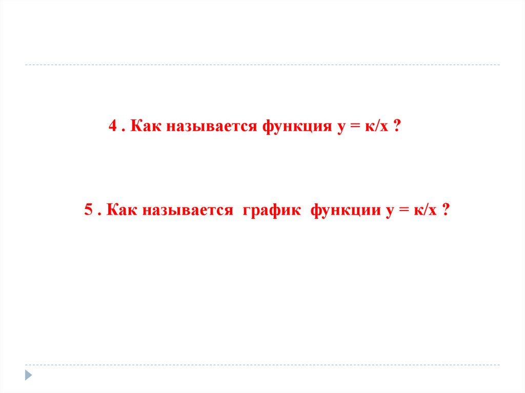 4 . Как называется функция у = к/х ?5 . Как называется график функции у = к/х ?