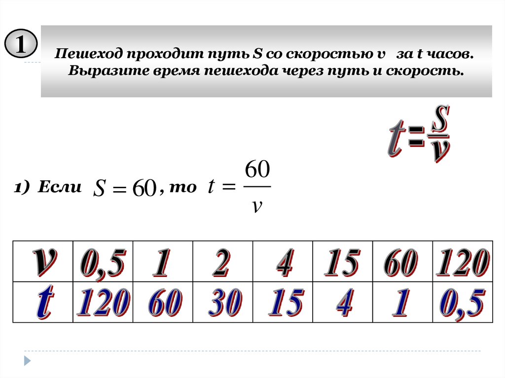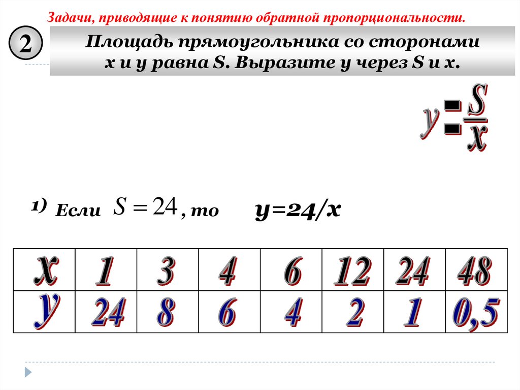 Задачи, приводящие к понятию обратной пропорциональности.2