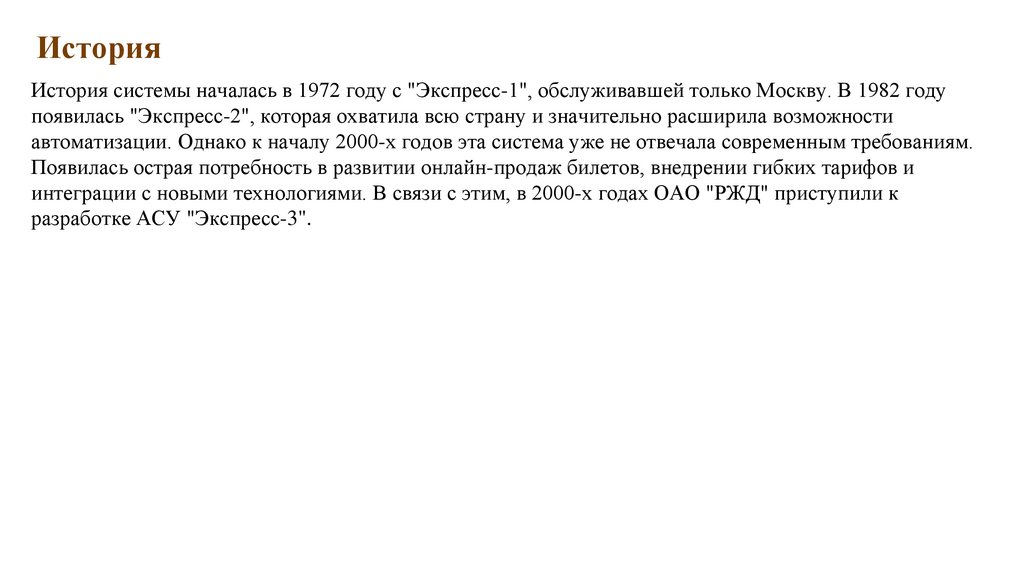 ИсторияИстория системы началась в 1972 году с "Экспресс-1", обслуживавшей только Москву. В 1982 году