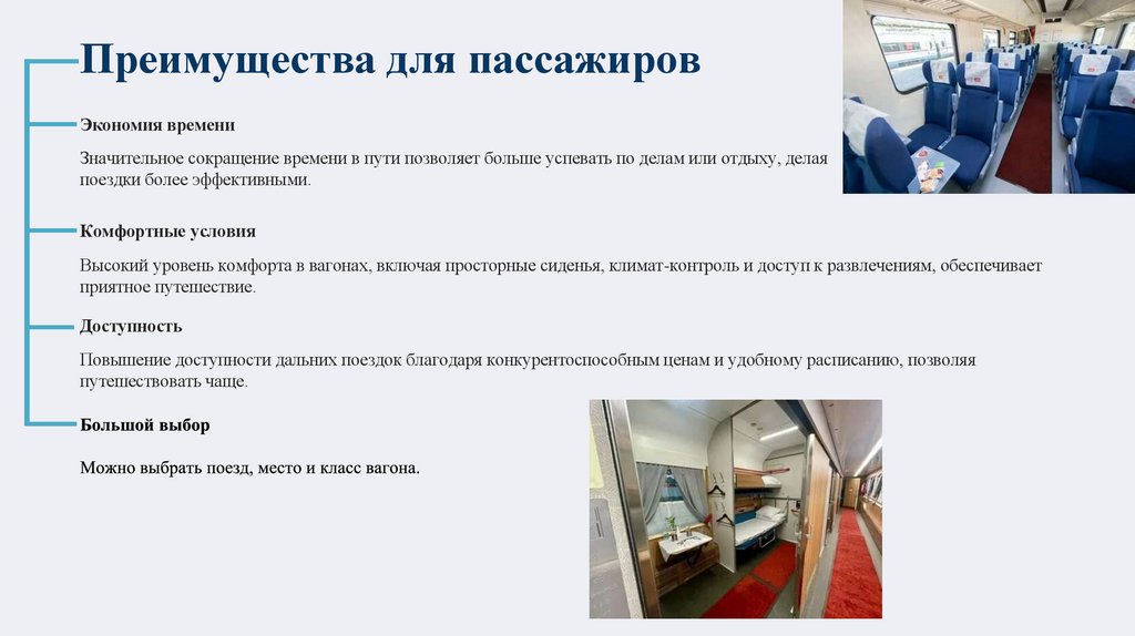 Повышение доступности дальних поездок благодаря конкурентоспособным ценам и удобному расписанию, позволяя
