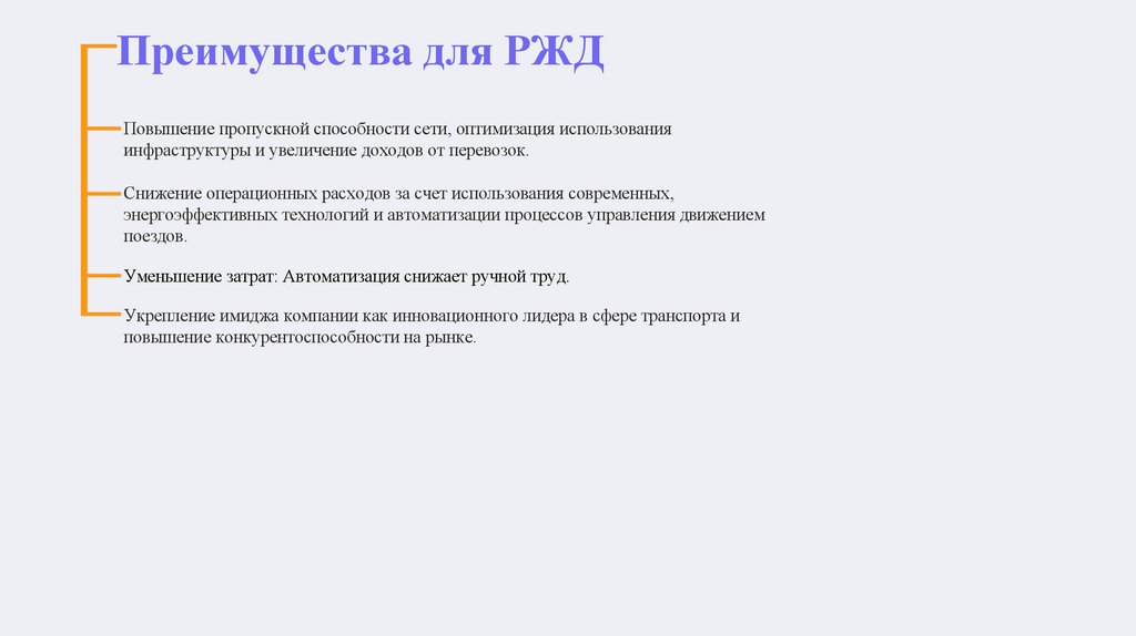 Преимущества для РЖДПовышение пропускной способности сети, оптимизация использования