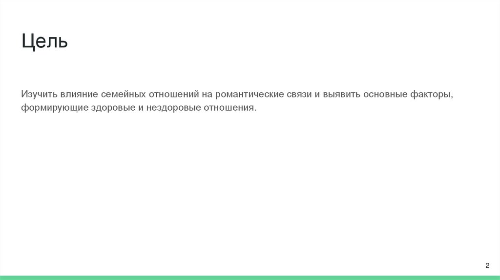 ЦельИзучить влияние семейных отношений на романтические связи и выявить основные факторы,
