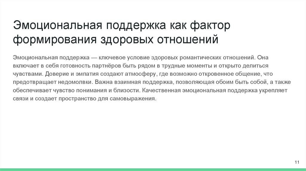 обеспечивает чувство понимания и близости. Качественная эмоциональная поддержка укрепляет