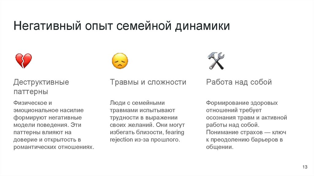 ПроблемаНехватка знаний о том, как семейные отношения влияют на формирование романтических связей,