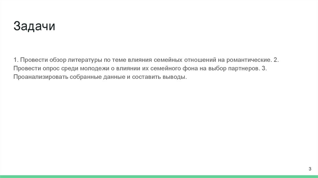 Задачи1. Провести обзор литературы по теме влияния семейных отношений на романтические. 2.