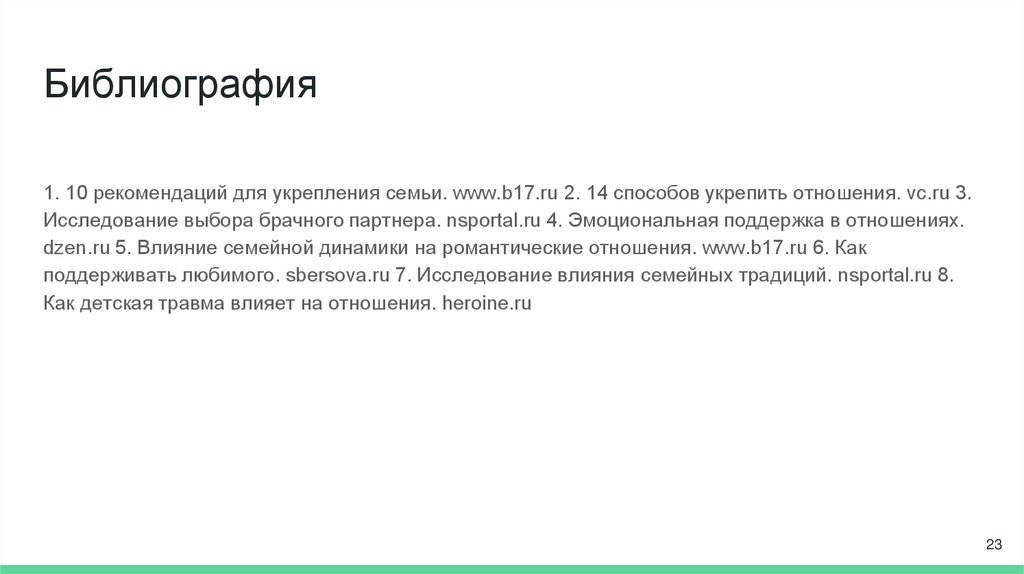 Библиография1. 10 рекомендаций для укрепления семьи. www.b17.ru 2. 14 способов укрепить отношения. vc.ru 3.