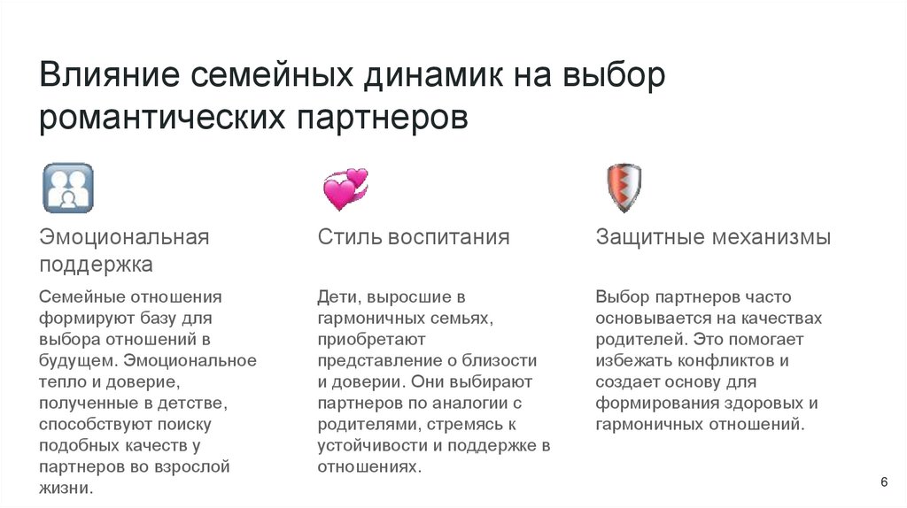 применения техник для решения конфликтов. Семейный опыт влияет на выбор партнера и может