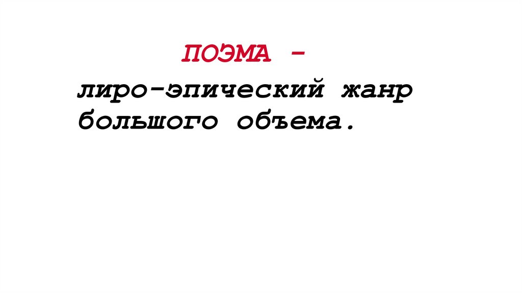 ПОЭМА лиро-эпический жанрбольшого объема.