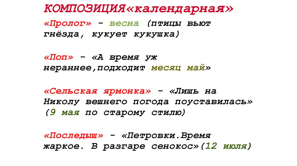 КОМПОЗИЦИЯ«календарная»«Пролог» - весна (птицы вьют