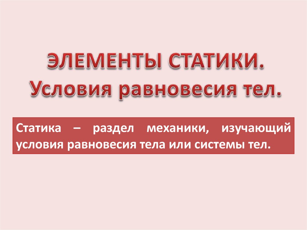 Статика – раздел механики, изучающийусловия равновесия тела или системы тел.