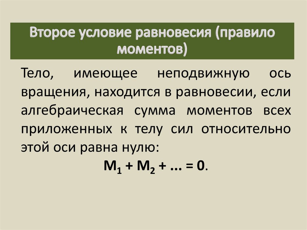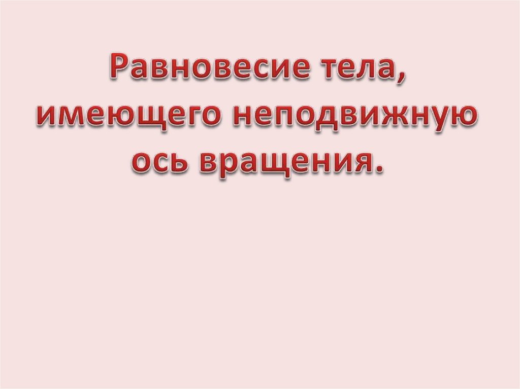 Тело, имеющее неподвижную осьвращения, находится в равновесии, если