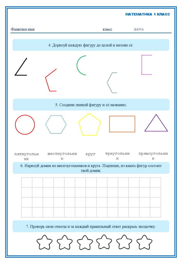 4. Дорисуй каждую фигуру до целой и назови её.
