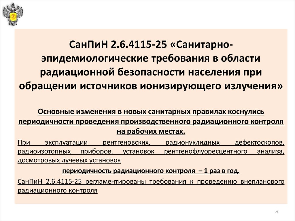 СанПиН 2.6.4115-25 «Санитарноэпидемиологические требования в областирадиационной безопасности населения при