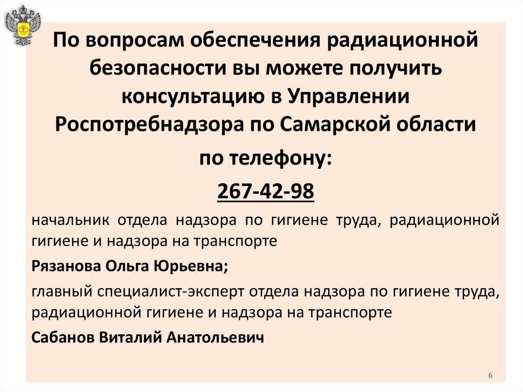 По вопросам обеспечения радиационнойбезопасности вы можете получить