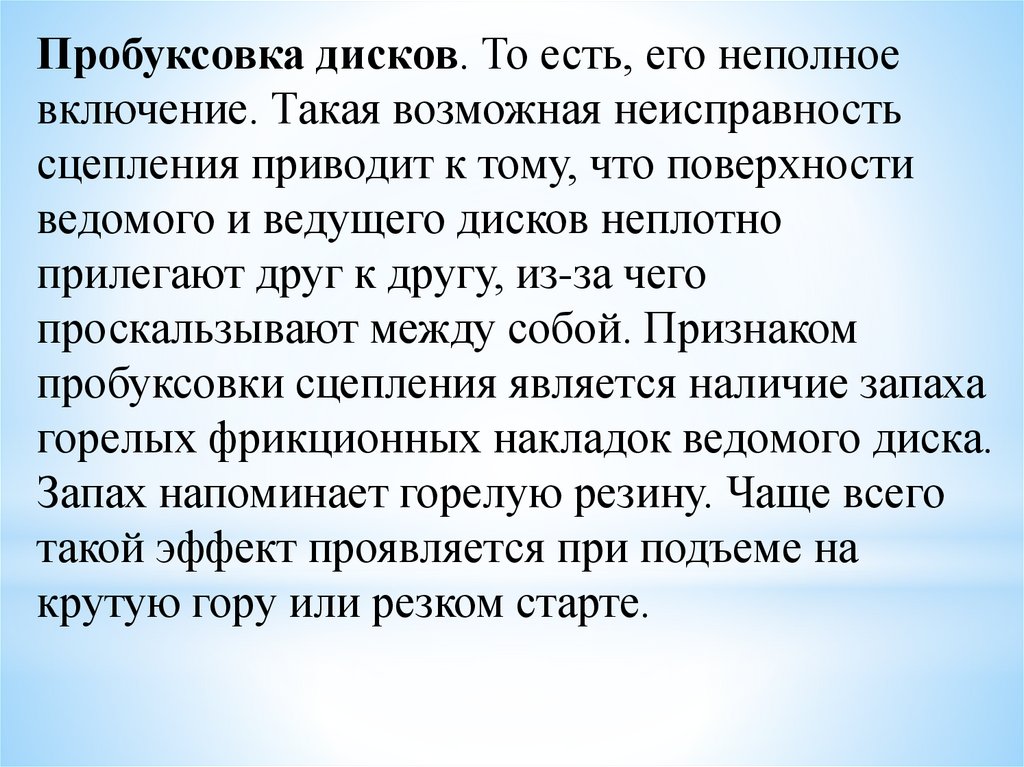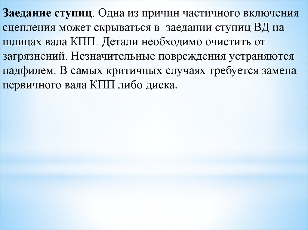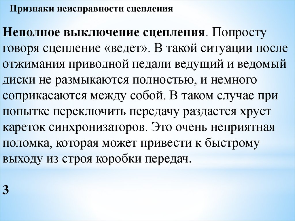 Признаки неисправности сцепленияНеполное выключение сцепления. Попросту