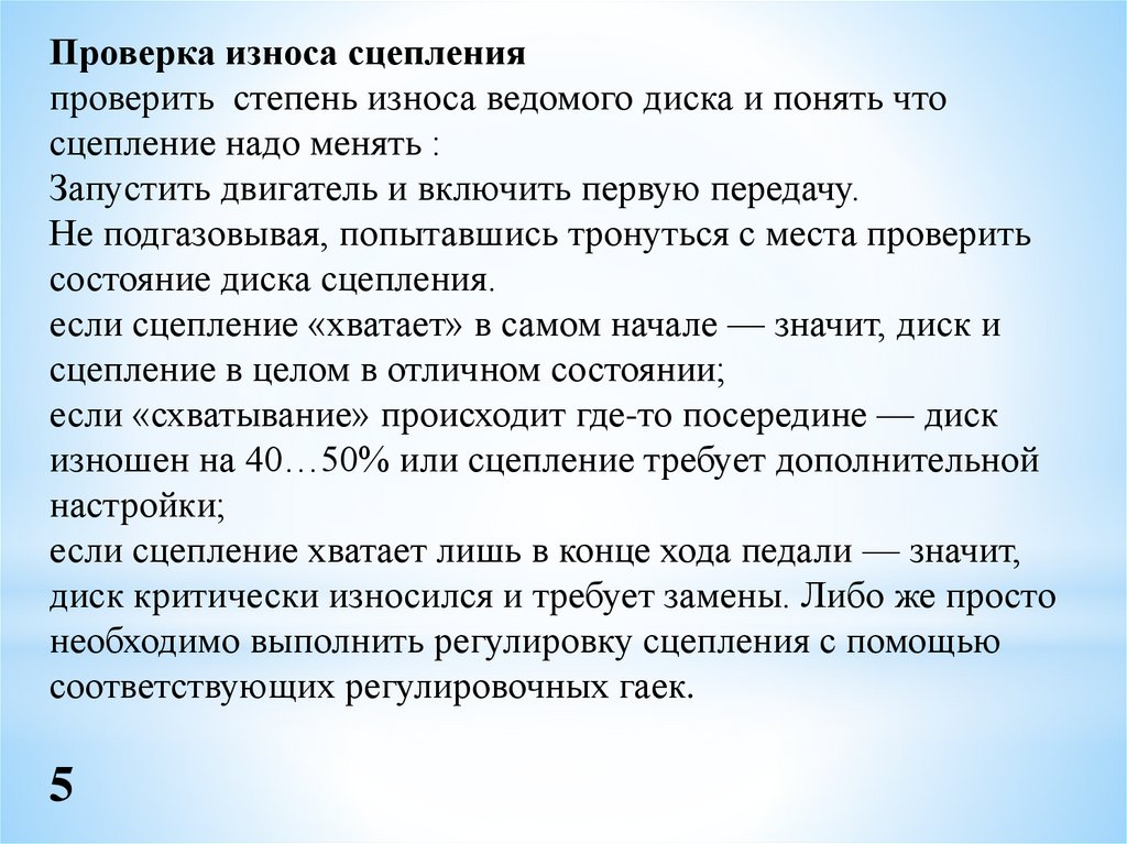 Проверка износа сцепленияпроверить степень износа ведомого диска и понять что