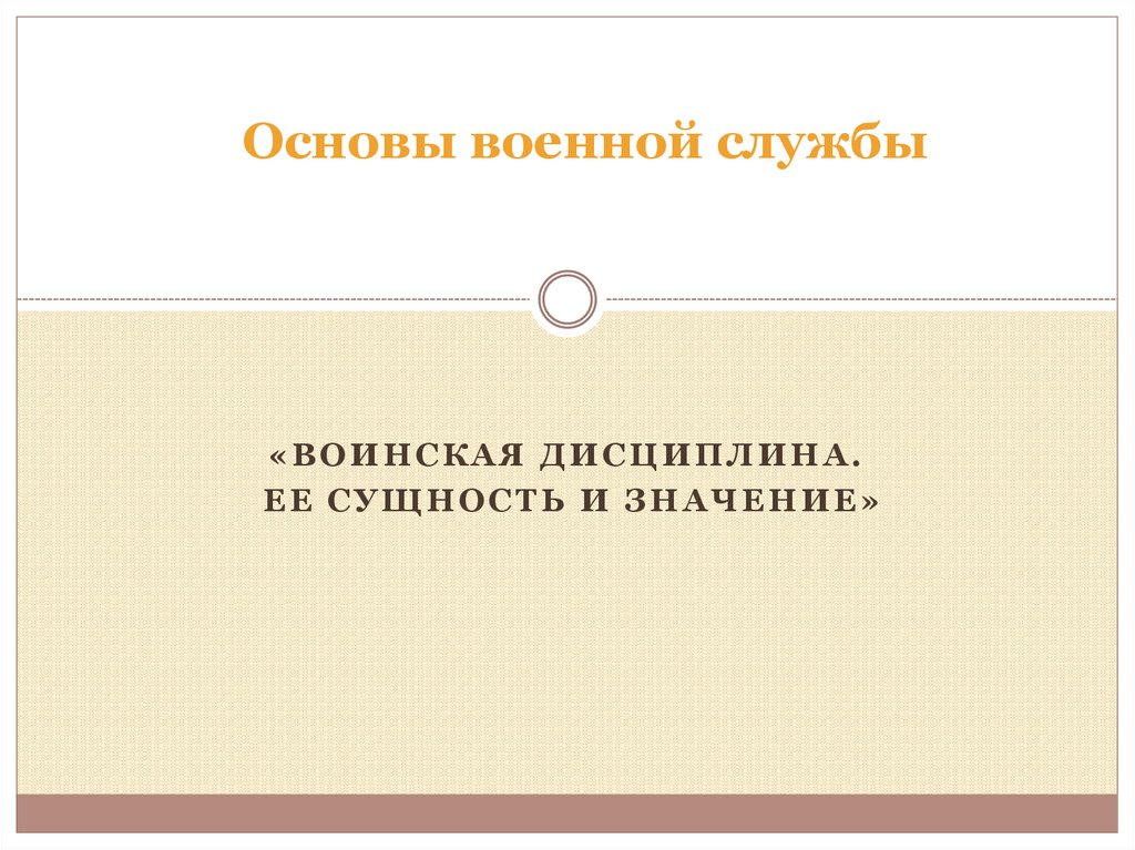 «ВОИНСКАЯ ДИСЦИПЛИНА.ЕЕ СУЩНОСТЬ И ЗНАЧЕНИЕ»