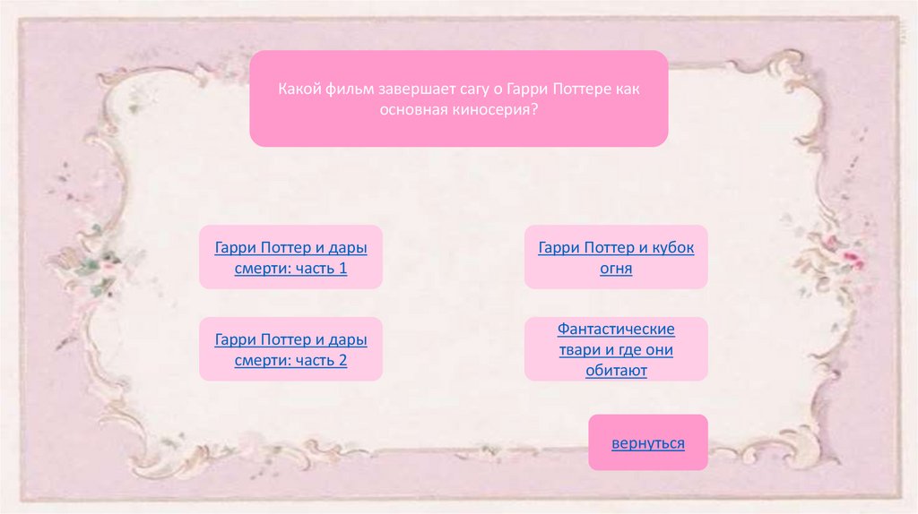 Какой фильм завершает сагу о Гарри Поттере какосновная киносерия?