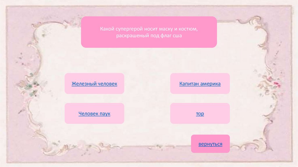Какой супергерой носит маску и костюм,раскрашеный под флаг сша
