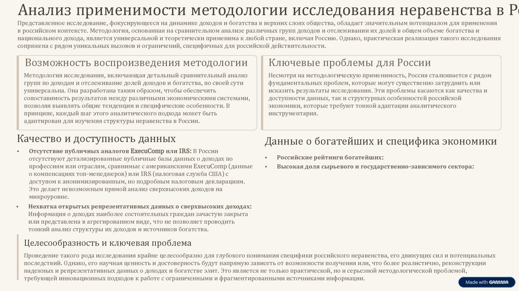 Анализ применимости методологии исследования неравенства в РоПредставленное исследование, фокусирующееся на динамике доходов и богатства в верхних слоях общества, обладает значительным потенциалом для применения