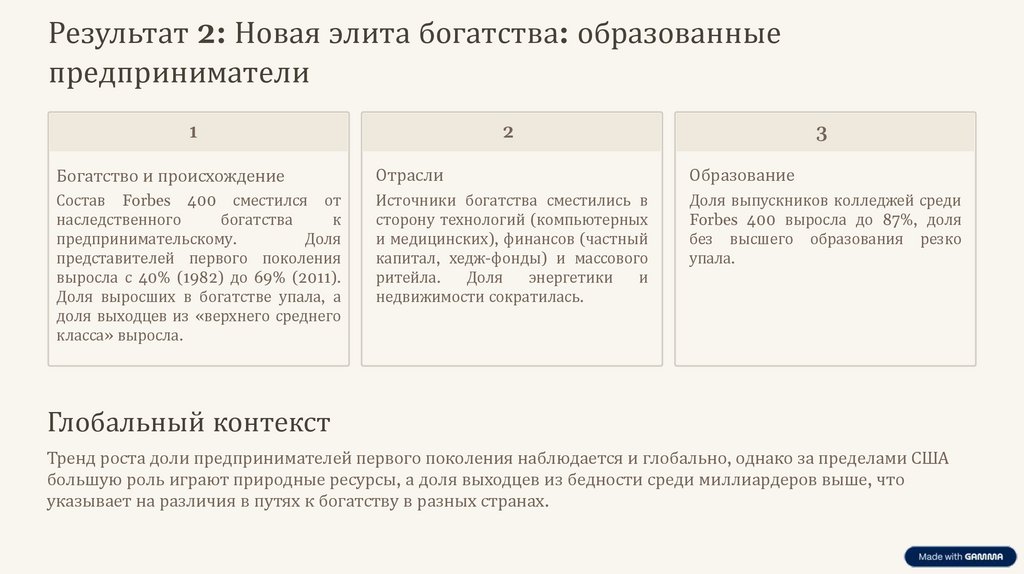 Результат 2: Новая элита богатства: образованныепредприниматели