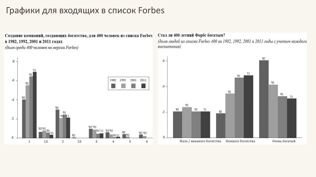 • Детальный анализ эволюции характеристик сверхбогатых (Forbes 400) за 30 лет, связывающий их успех с