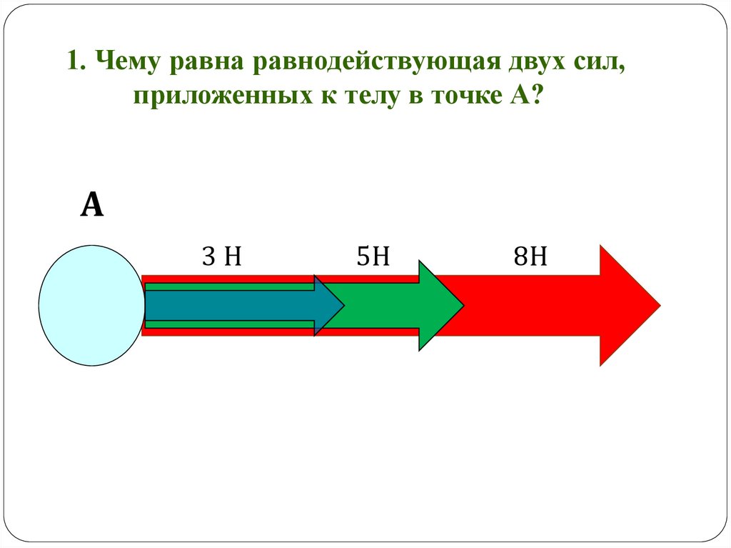 1. Чему равна равнодействующая двух сил,приложенных к телу в точке А?
