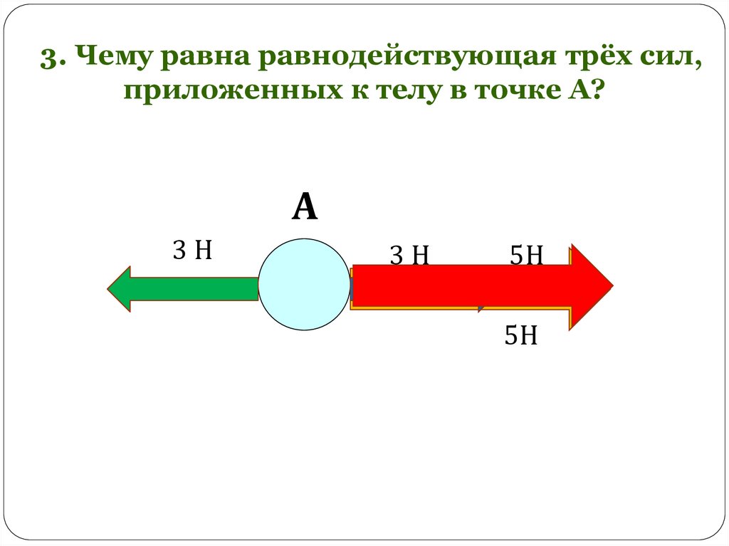 3. Чему равна равнодействующая трёх сил,приложенных к телу в точке А?