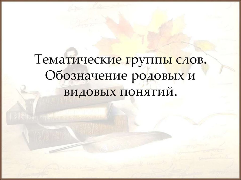 1. Тематические группы слов. Обозначение родовых и видовых понятий.
