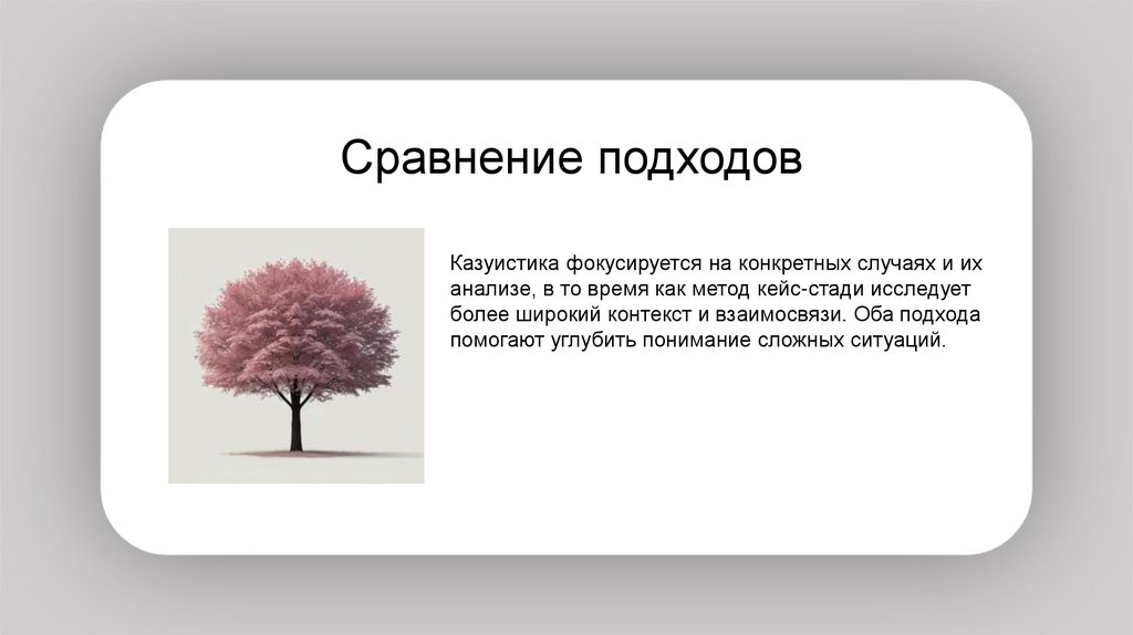 Сравнение подходовКазуистика фокусируется на конкретных случаях и их