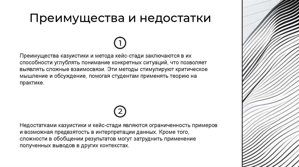 Преимущества и недостаткиПреимущества казуистики и метода кейс-стади заключаются в их
