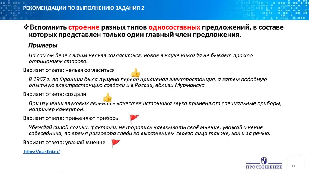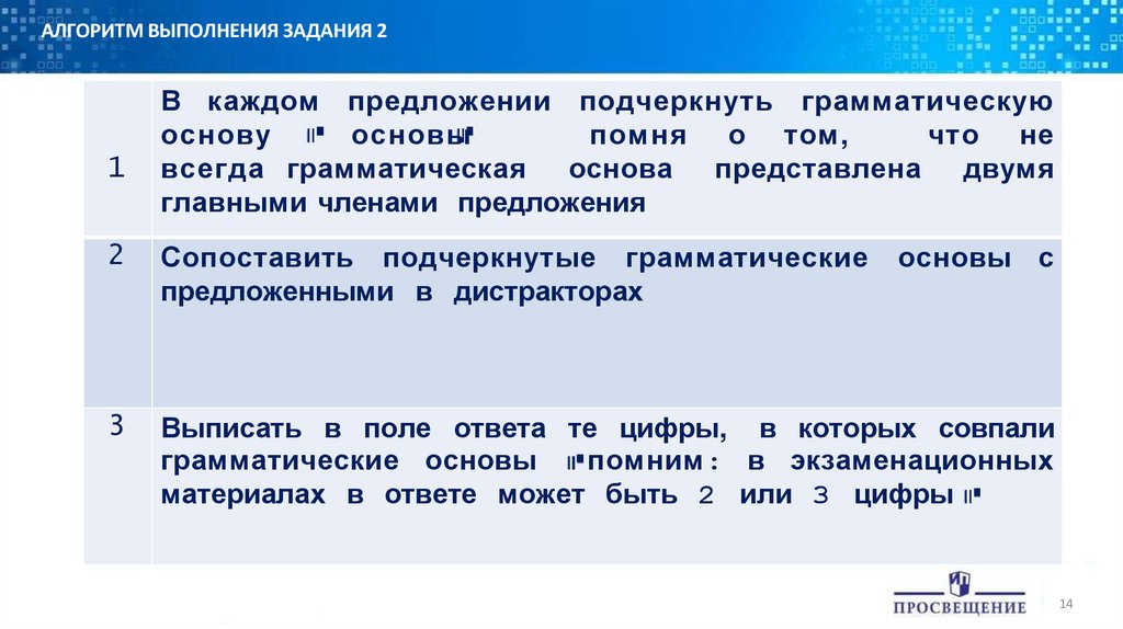 Для успешного выполнения задания 2 необходимо повторить с учащимися• главные и второстепенные члены предложения