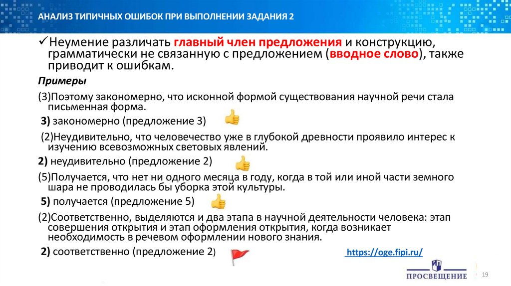 АНАЛИЗ ТИПИЧНЫХ ОШИБОК ПРИ ВЫПОЛНЕНИИ ЗАДАНИЯ 2Неумение различать главный член предложения и конструкцию,