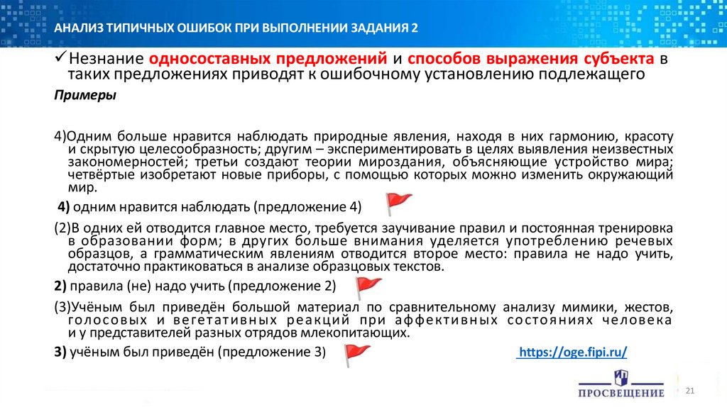 АНАЛИЗ ТИПИЧНЫХ ОШИБОК ПРИ ВЫПОЛНЕНИИ ЗАДАНИЯ 2Незнание односоставных предложений и способов выражения субъекта в