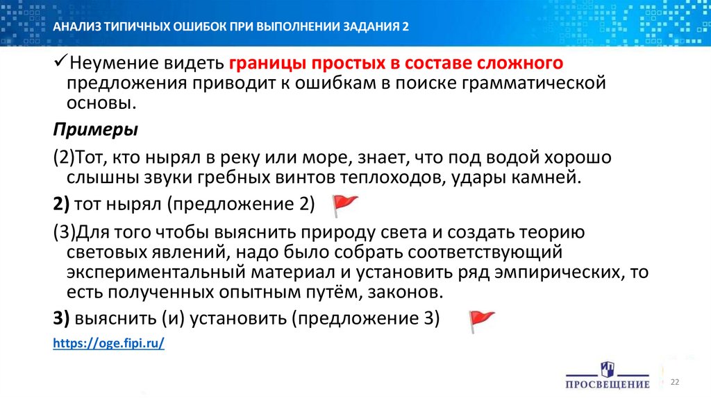 АНАЛИЗ ТИПИЧНЫХ ОШИБОК ПРИ ВЫПОЛНЕНИИ ЗАДАНИЯ 2Неумение видеть границы простых в составе сложного